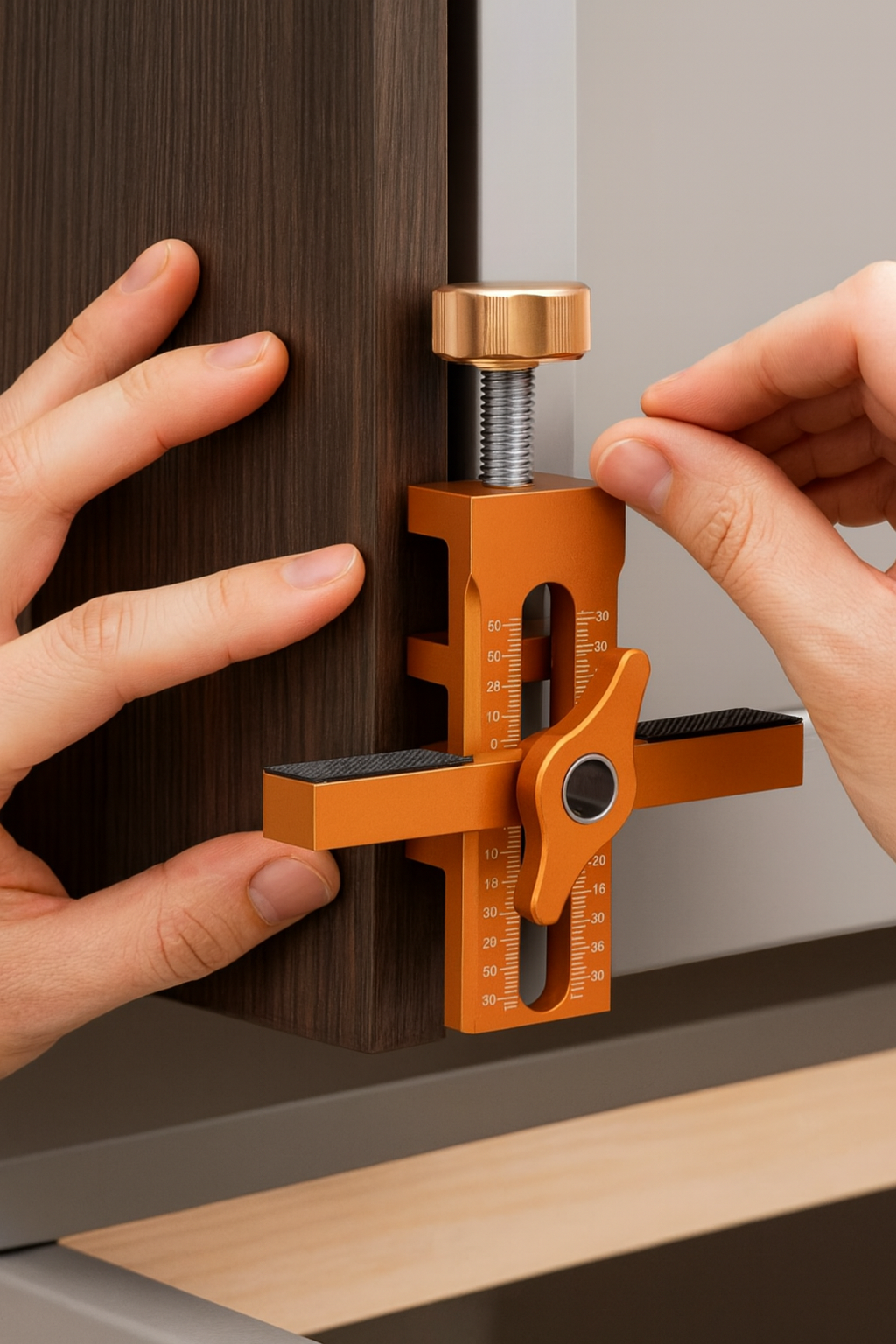 Die Lush 2-in-1-Montagevorrichtung für Schranktüren ändert das. Mit einem Ein Klick Verriegelungsmechanismus und einer präzisen Höhenverstellung können Sie Schranktüren alleine stützen, ausrichten und befestigen und dennoch professionelle Ergebnisse erzielen.