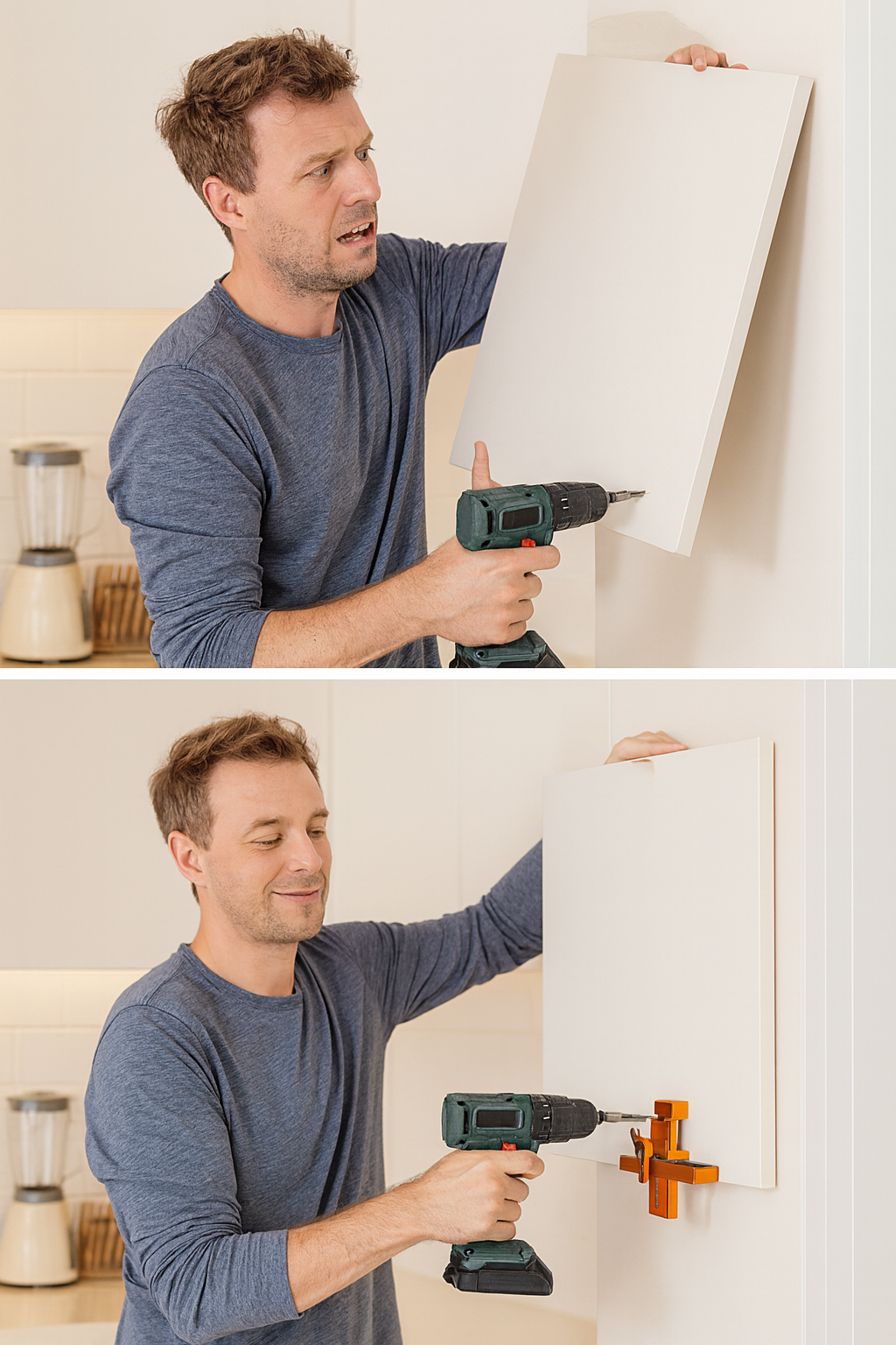 Schranktüren sehen einfach aus ... bis man versucht, sie gleichzeitig zu halten, auszurichten und anzuschrauben.