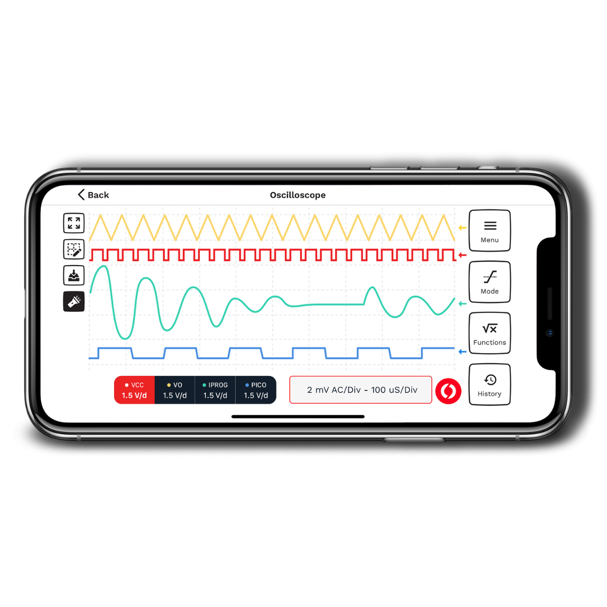 Die Pokit-App integriert mehrere Messinstrumente nahtlos in eine intuitive Plattform, auf die Sie von Ihrem Smart Gerät aus zugreifen können.