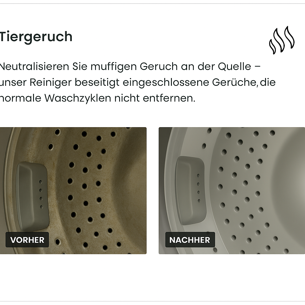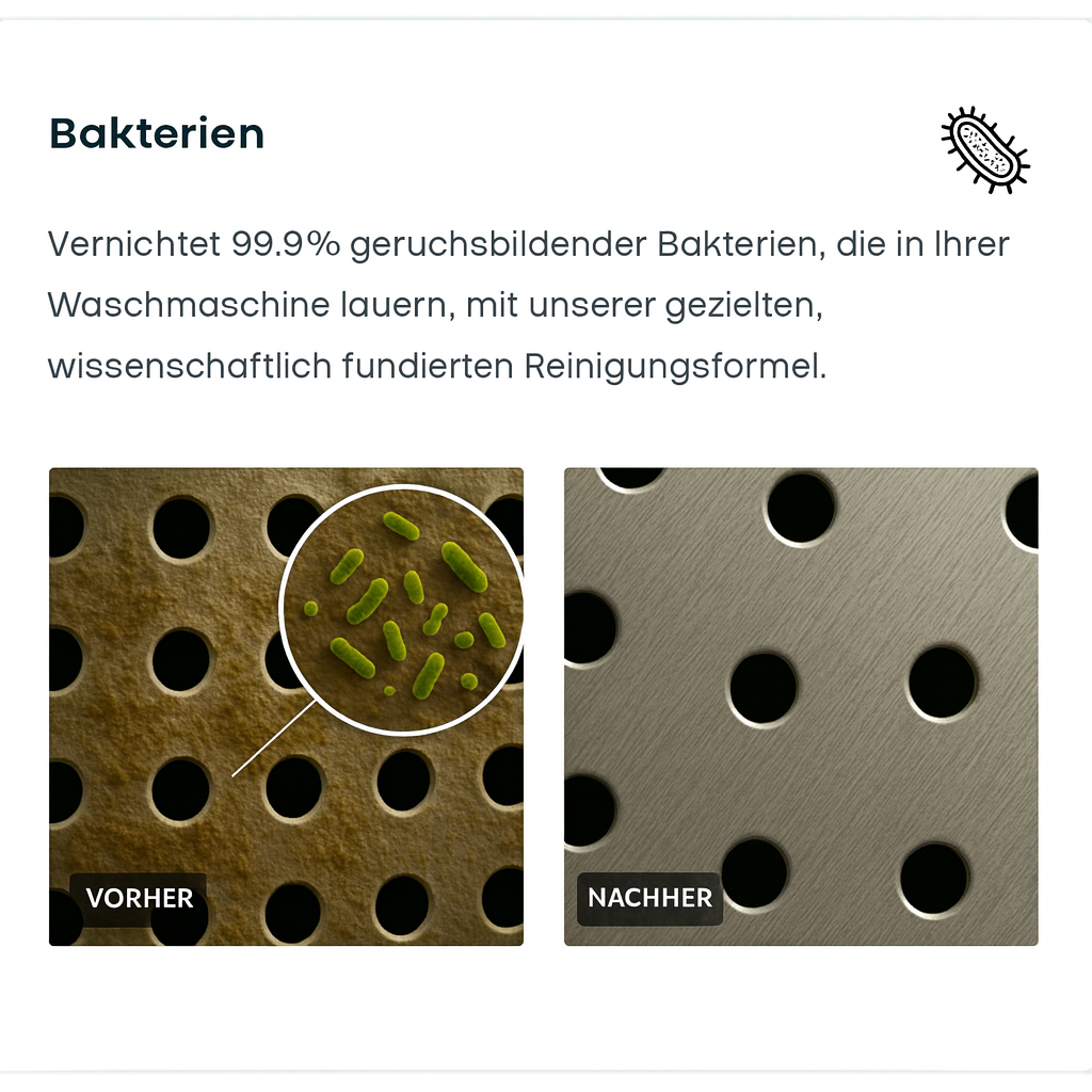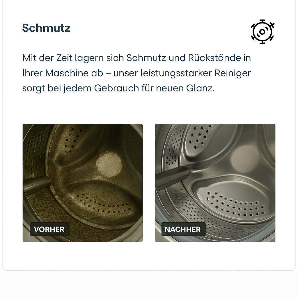 Keine unangenehmen Gerüche mehr, keine pelzige Wäsche mehr, sondern eine Waschmaschine, die endlich so sauber riecht, wie sie sollte.