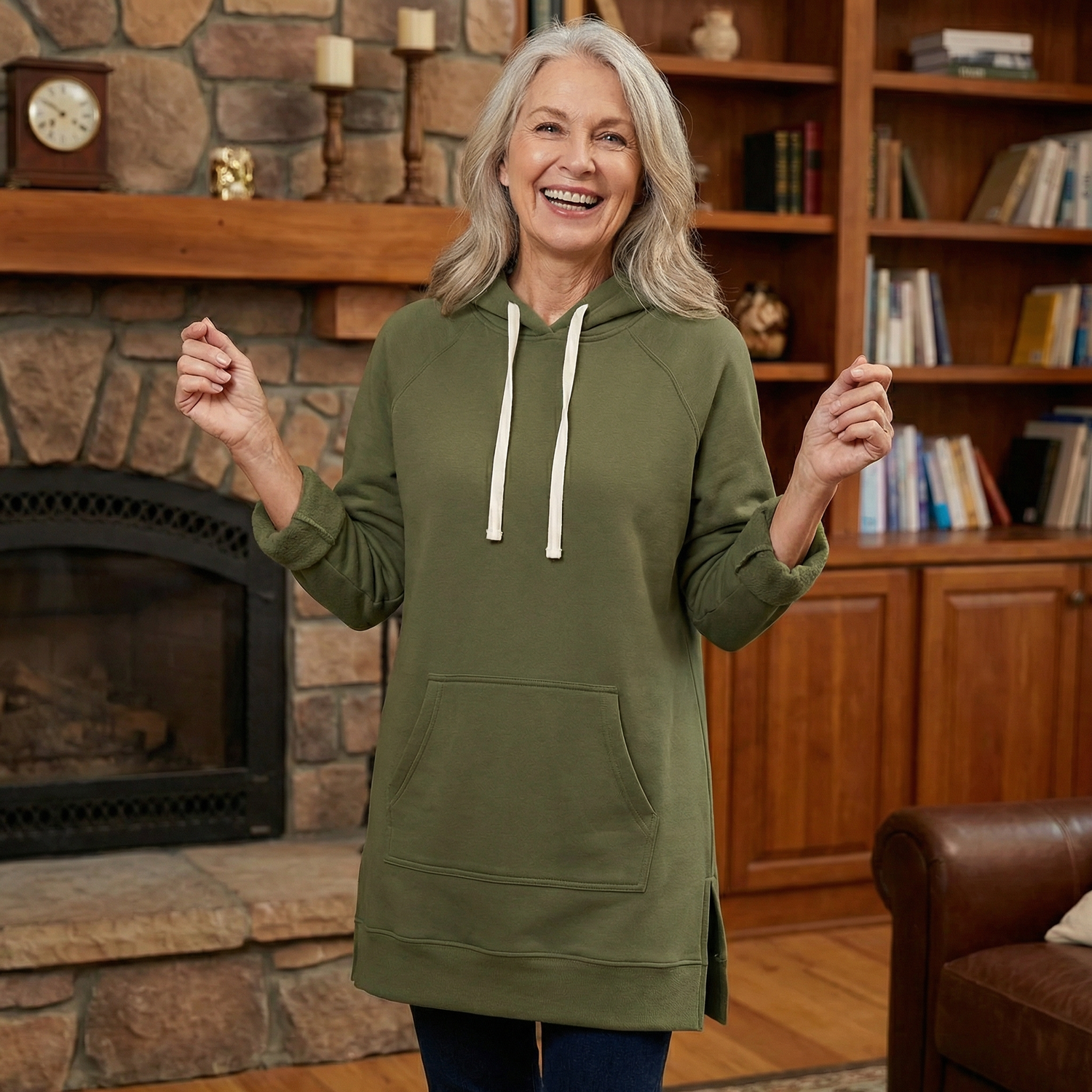 Keine Vorbereitung, kein Aufwand. Das Talitha Kapuzenkleid™ schenkt Ihnen sofort spürbaren Komfort und passt perfekt in Ihren Alltag. Ob zu Hause auf dem Sofa, beim Homeoffice oder unterwegs, es hält angenehm warm, fühlt sich weich auf der Haut an und sorgt den ganzen Tag für ein entspanntes, geborgenes Tragegefühl.